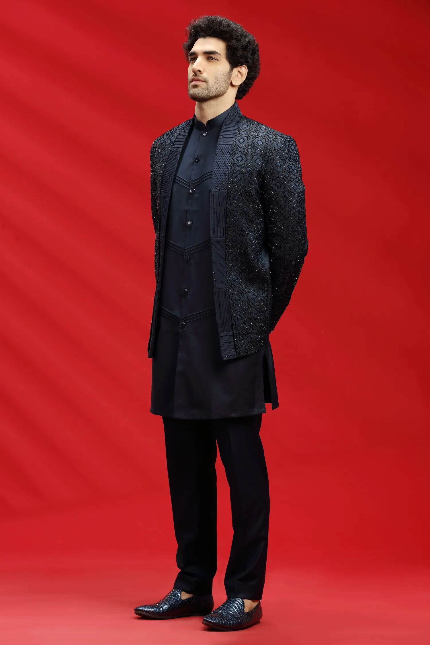 Be the first to review “Dark Blue Imported Indo Western Outfit”