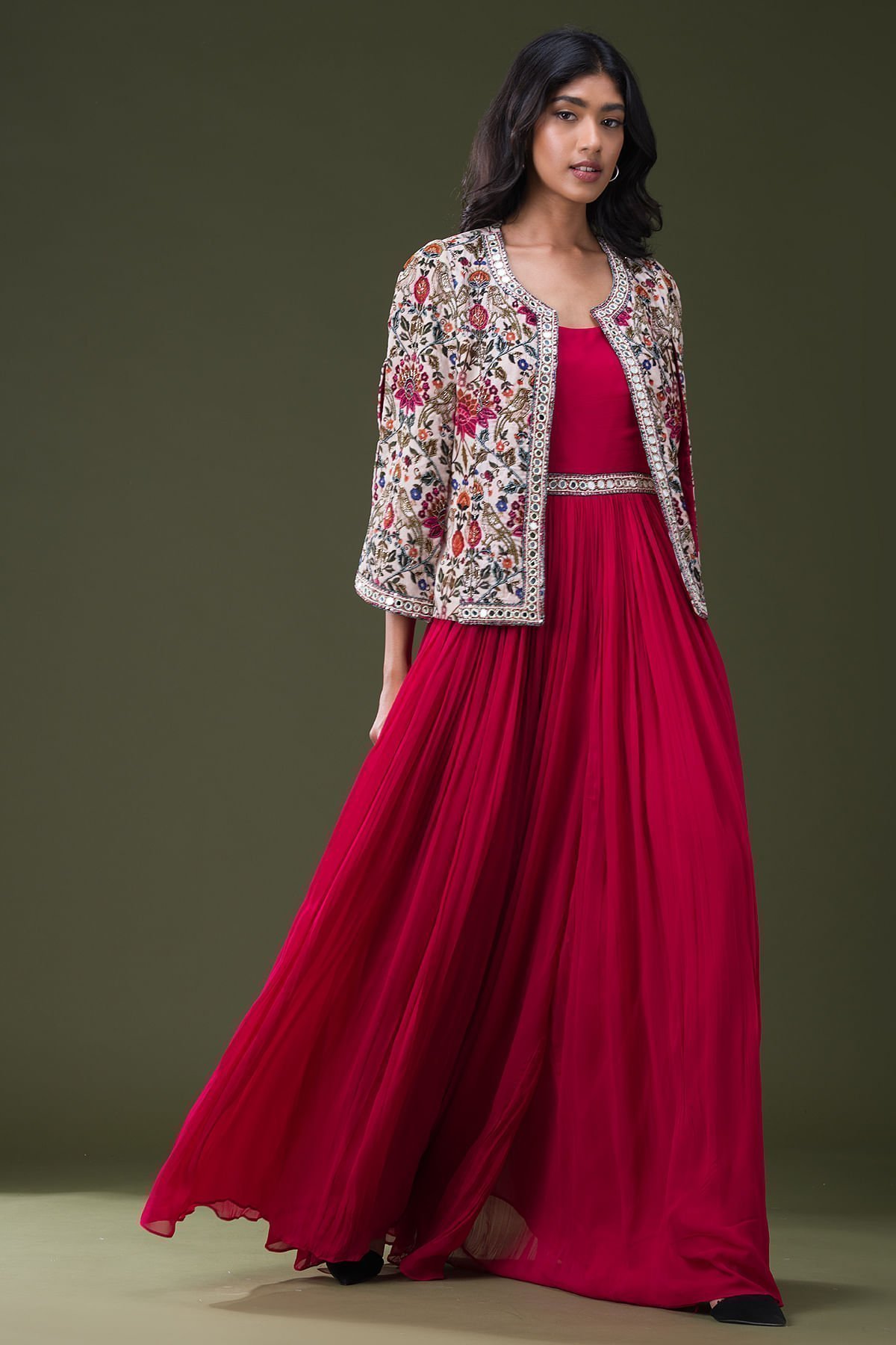 Be the first to review “Dark Pink Mirror Embroidered Georgette Jumpsuit”