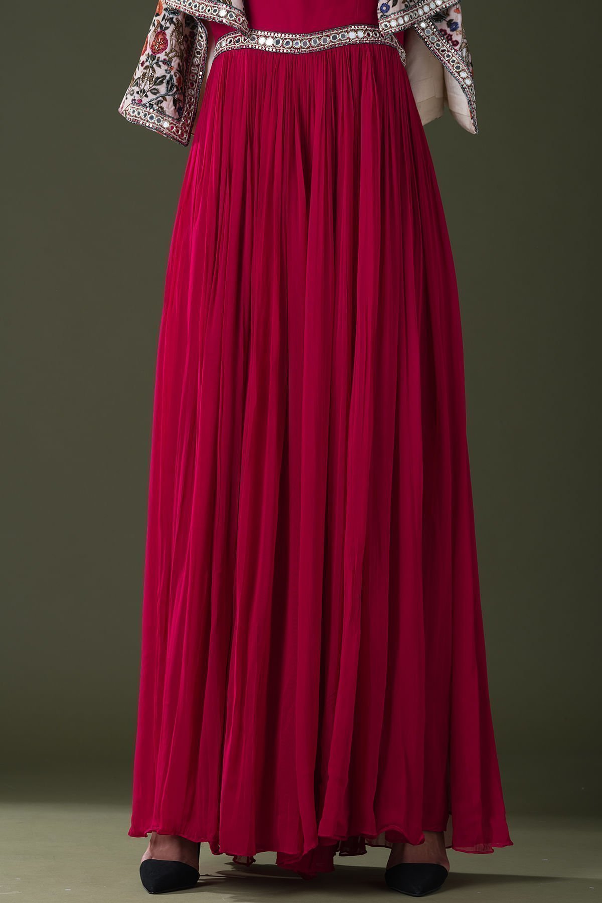 Dark Pink Mirror Embroidered Georgette Jumpsuit