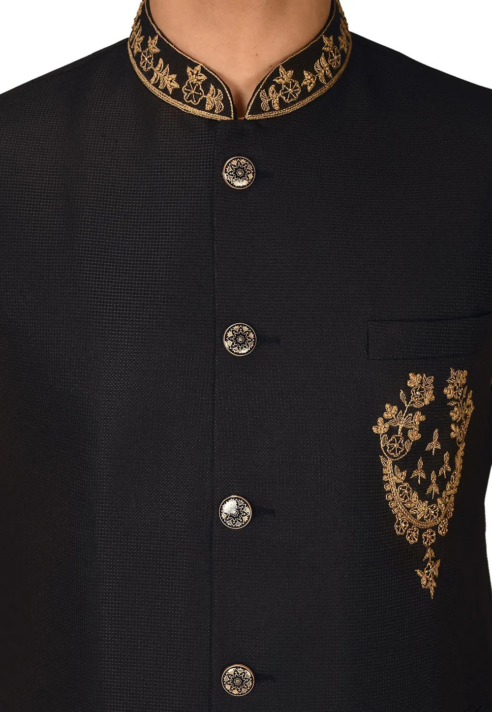 Be the first to review “Embroidered Polyester Knitted Nehru Jacket in Black” Cancel reply