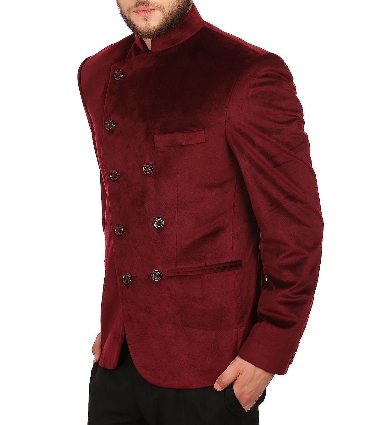 Golden Printed Polyester Lycra Tuxedo in Black and Maroon